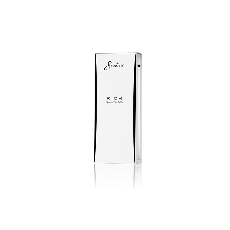 Princess Rich FILLER – A hyaluronic acid product that is used for a mesotherapy technique, injected into the superficial dermis with a 30G needle.